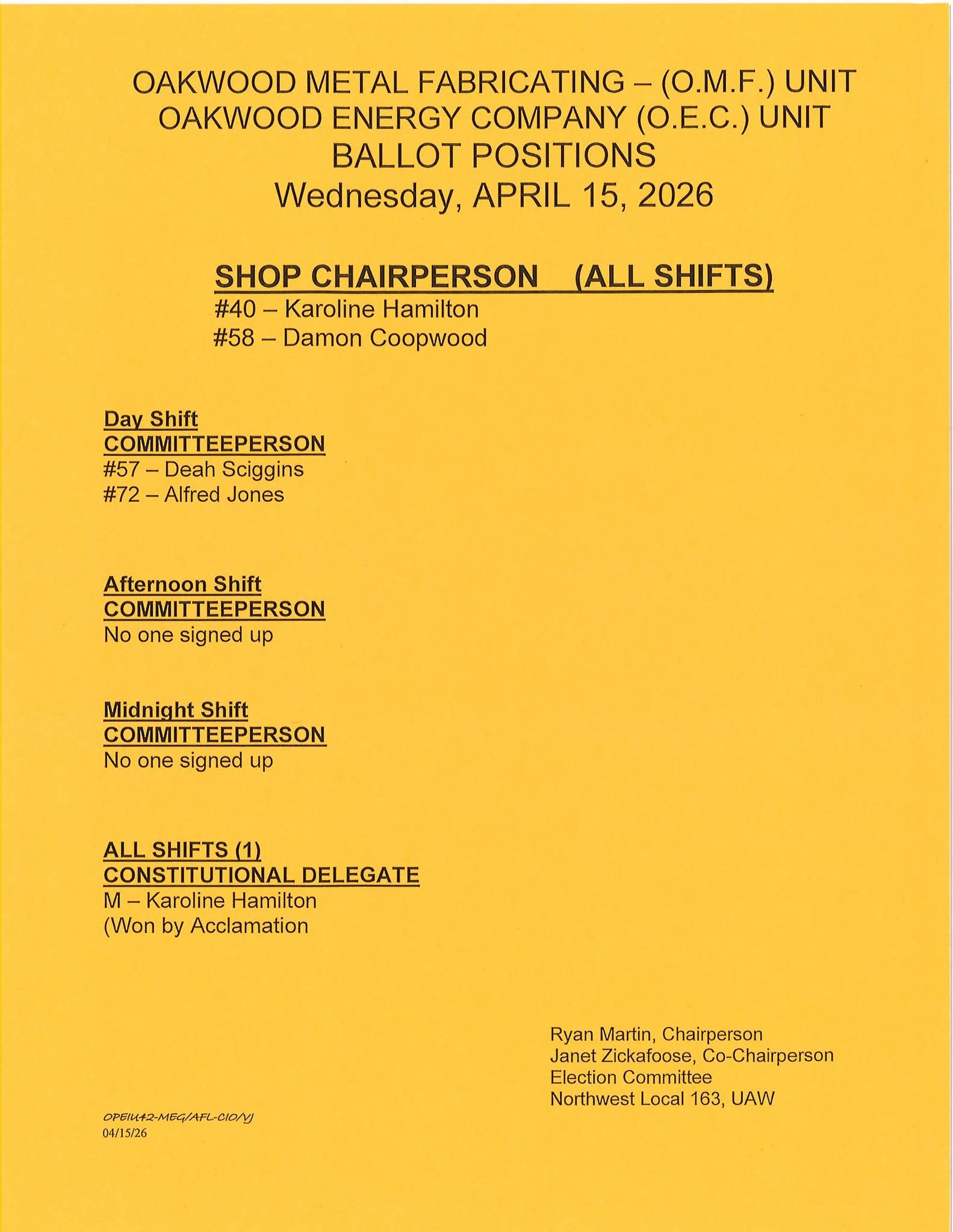 Oakwood OMF and OEC Ballot Positions